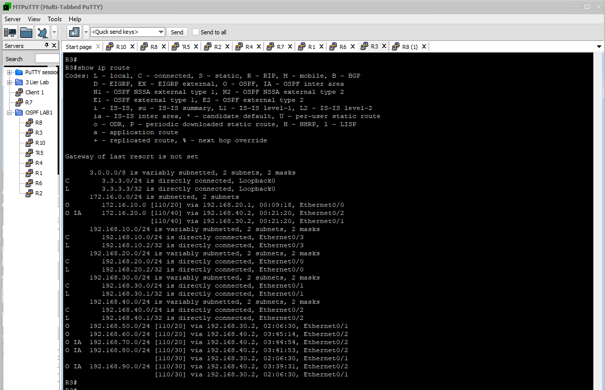 show ip route: Validar o recebimento das rotas de outras áreas.